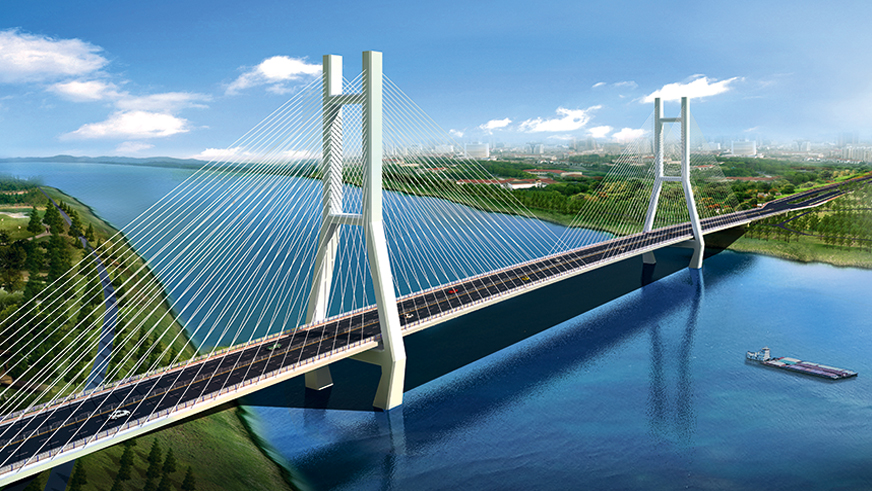 濟(jì)南黃河公路大橋采用雙塔雙索面等高鋼桁架斜拉橋結(jié)構(gòu)形式,全長 1028 米,主跨 488 米,主塔高 168 米,主梁采用整體式鋼桁梁斷面,上下兩層,上層橋面為雙向八車道公路橋面,下層為雙線軌道橋面。濟(jì)南黃河公路大橋是貫徹落實黃河流域生態(tài)保護(hù)和高質(zhì)量發(fā)展的國家戰(zhàn)略深入實施的重大項目,是加快濟(jì)南“擁河發(fā)展”、奮力開啟“黃河時代”的重要保障。